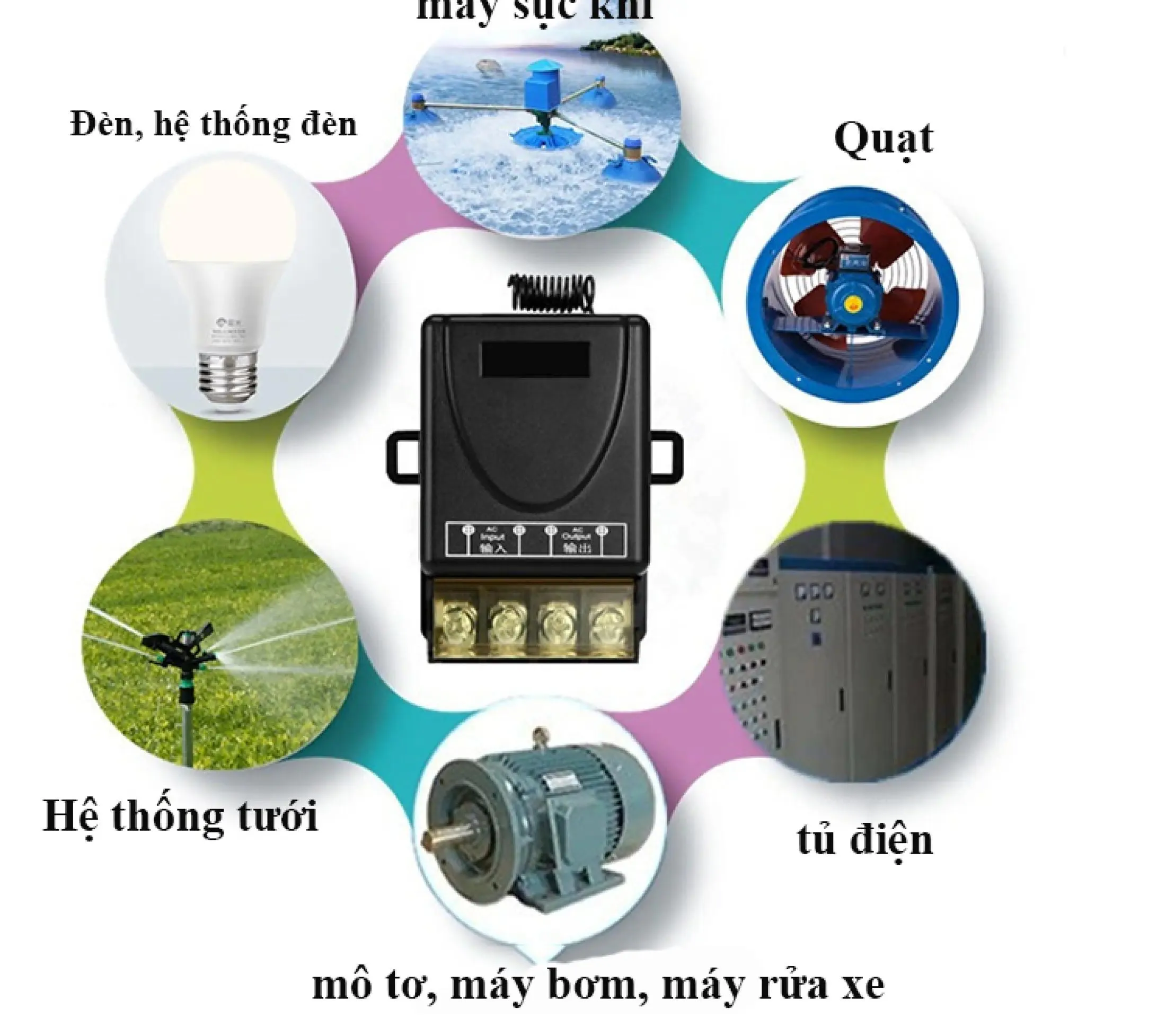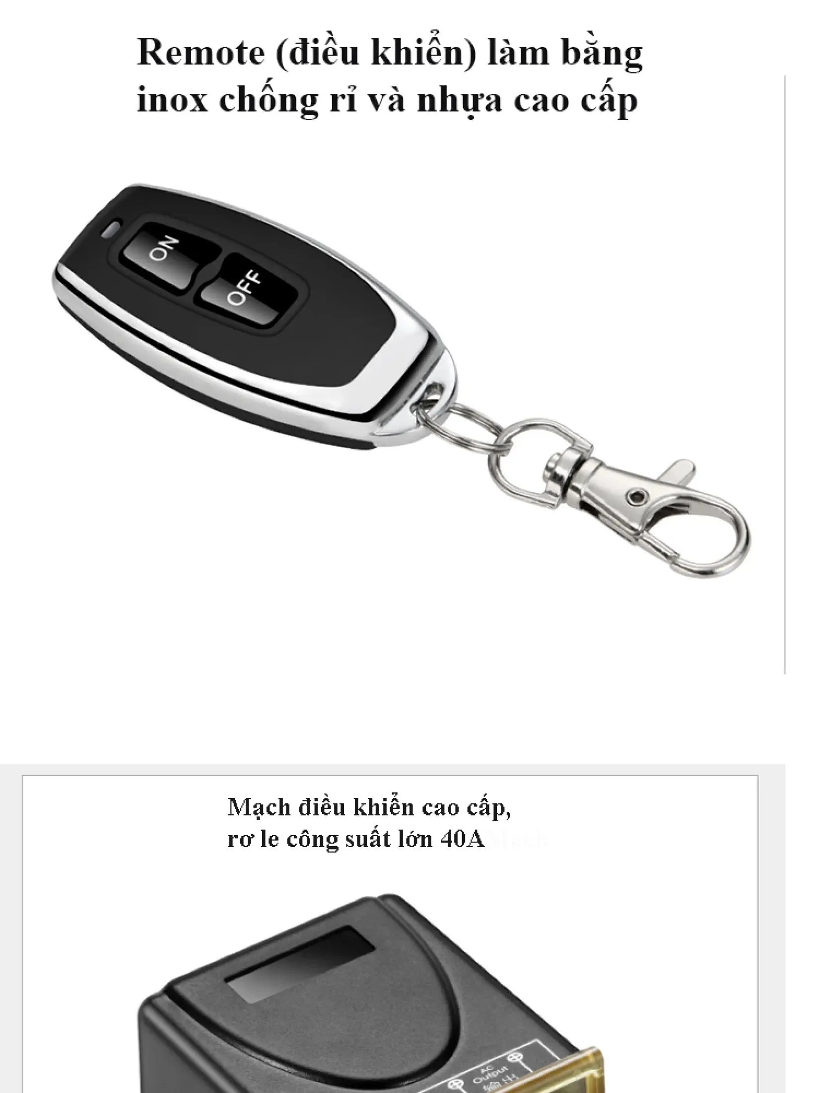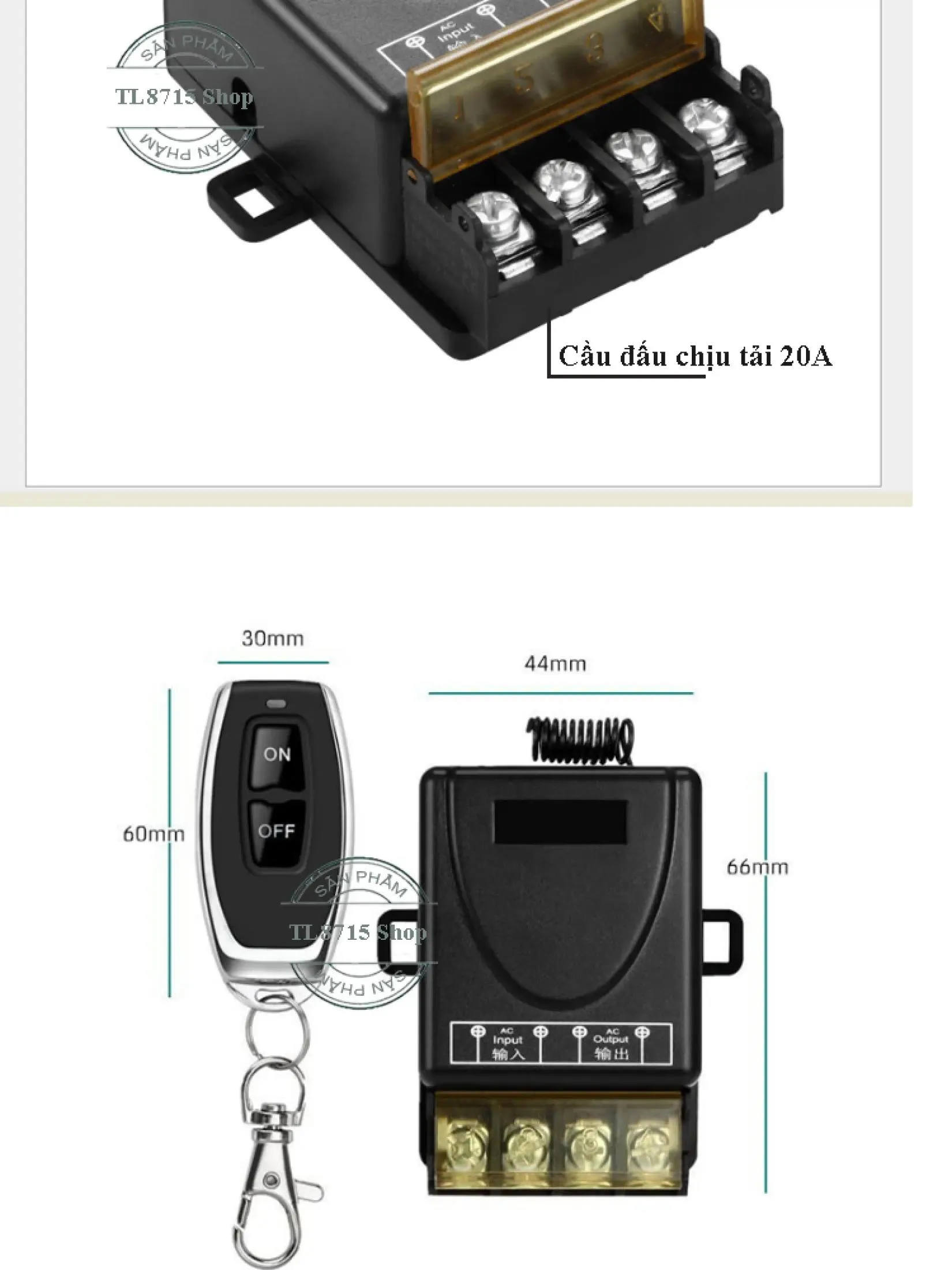 ● Dùng để điều khiển đóng ngắt thiết bị điện từ xa như: đèn, quạt, máy bơm nước ….vvvv với công suất tải tối đa 3000W.