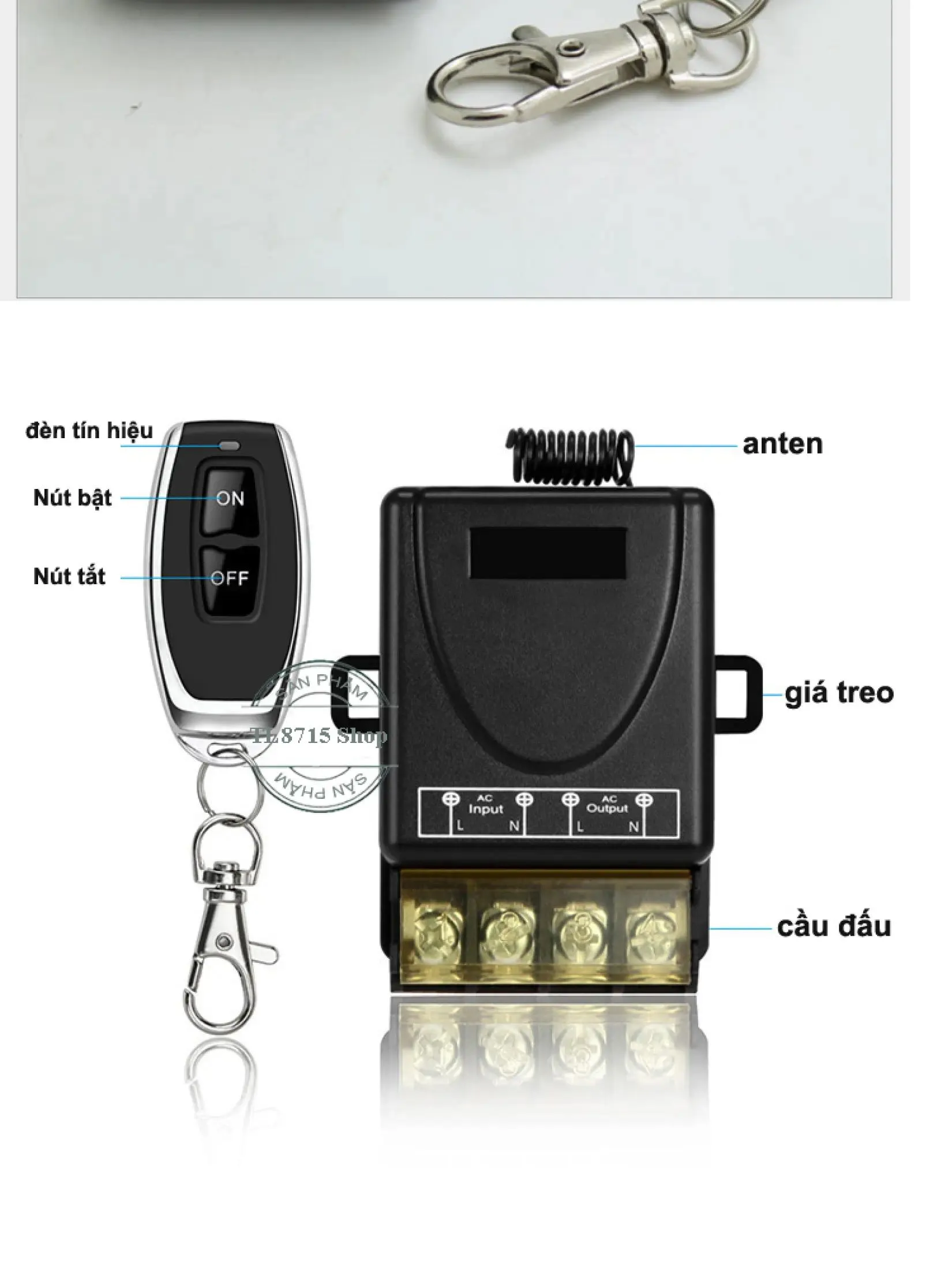 ● Điều khiển tắt mở thiết bị điện từ xa bằng sóng vô tuyến (radio), có thể đi qua các vật cản (vách ngăn, tường nhà)