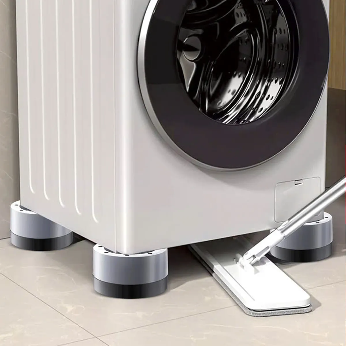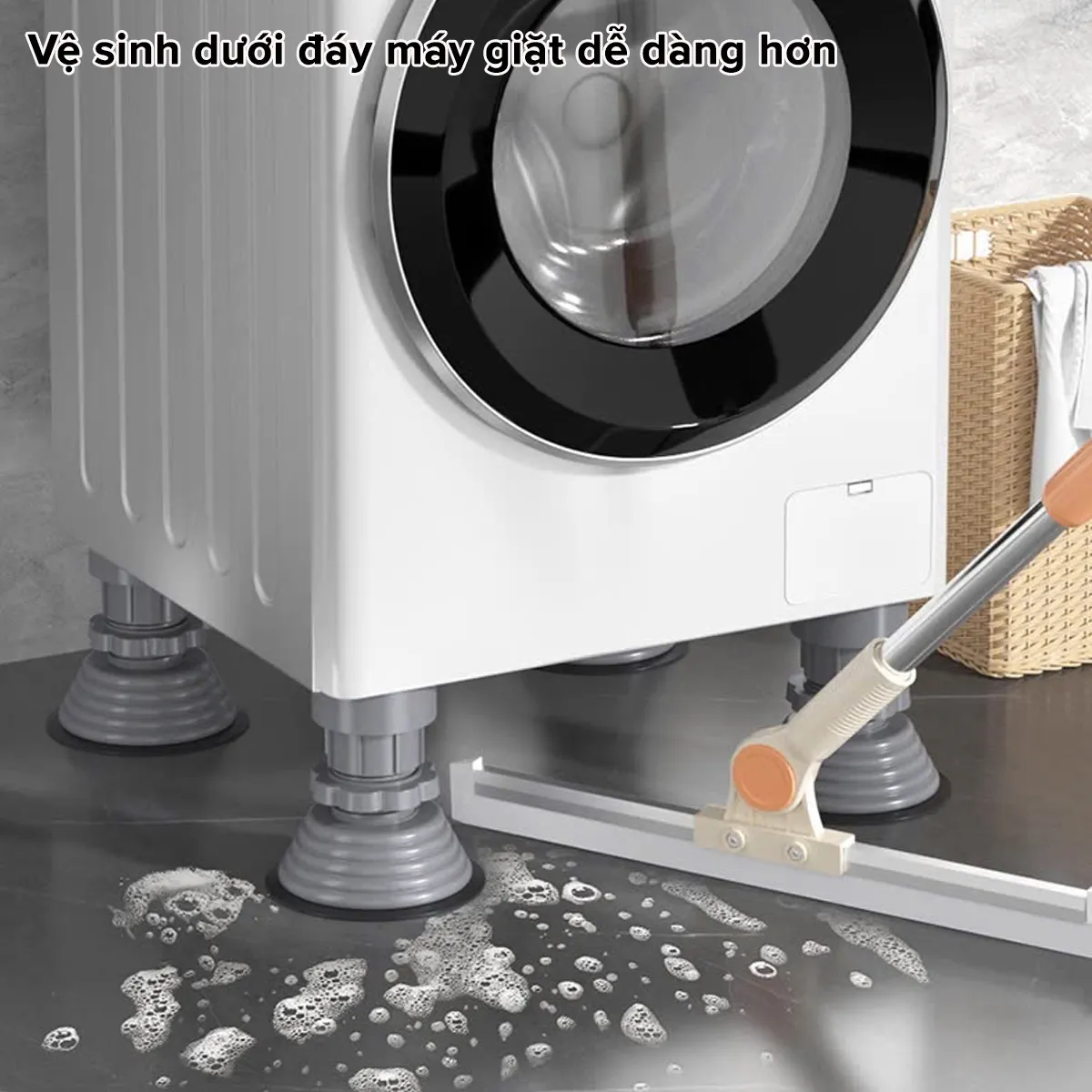 - - Ngoài việc giúp ngăn chặn máy giặt rung lắc, chân kê máy giặt còn giúp bảo vệ sàn nhà khỏi bị trầy xước và hao mòn do tiếng ồn và rung động của máy. Sản phẩm này còn có nhiều kích cỡ khác nhau để phù hợp với nhiều loại máy giặt khác nhau trên thị trường.