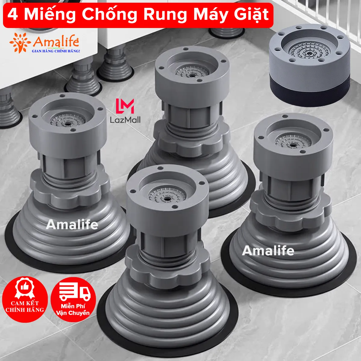 Bộ Chân Đế Máy Giặt 4 Miếng Kê Tủ Lạnh Chống Rung Chống Trơn Trượt Điều Chỉnh Tăng Giảm Chiều Cao Chính Hãng Amalife