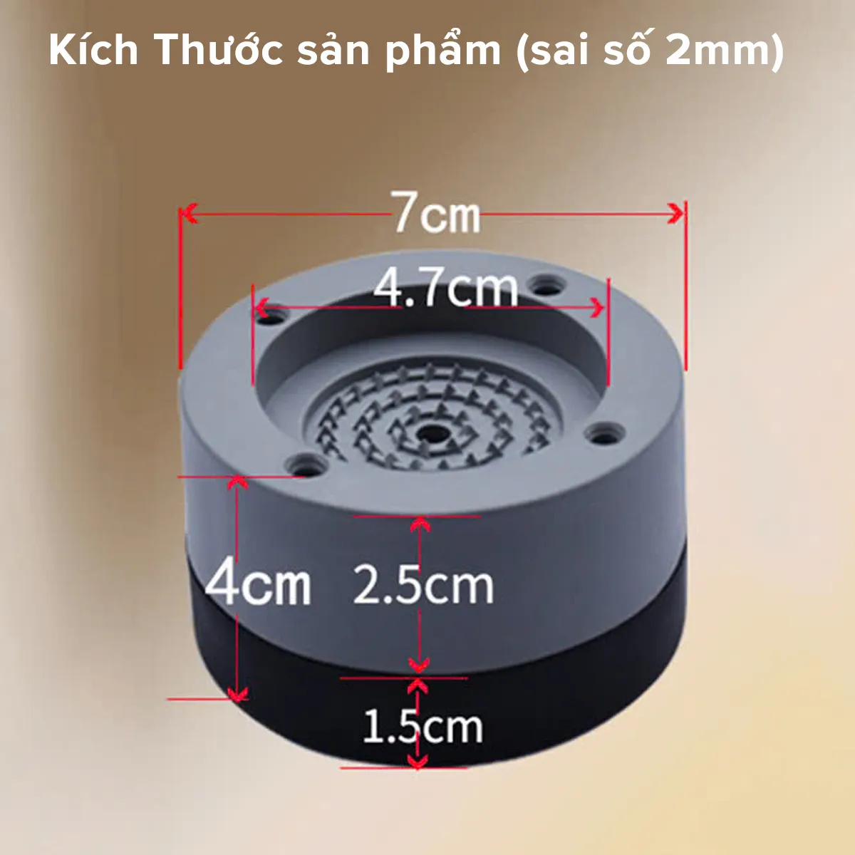 - - Tính năng: Chống di chuyển, giảm rung, giảm tiếng ồn. Có thể thay đổi chiều cao của chân qua thao tác đơn giản xoay khóa dễ dàng điều chỉnh độ cao theo mong muốn trong khoảng 2cm.