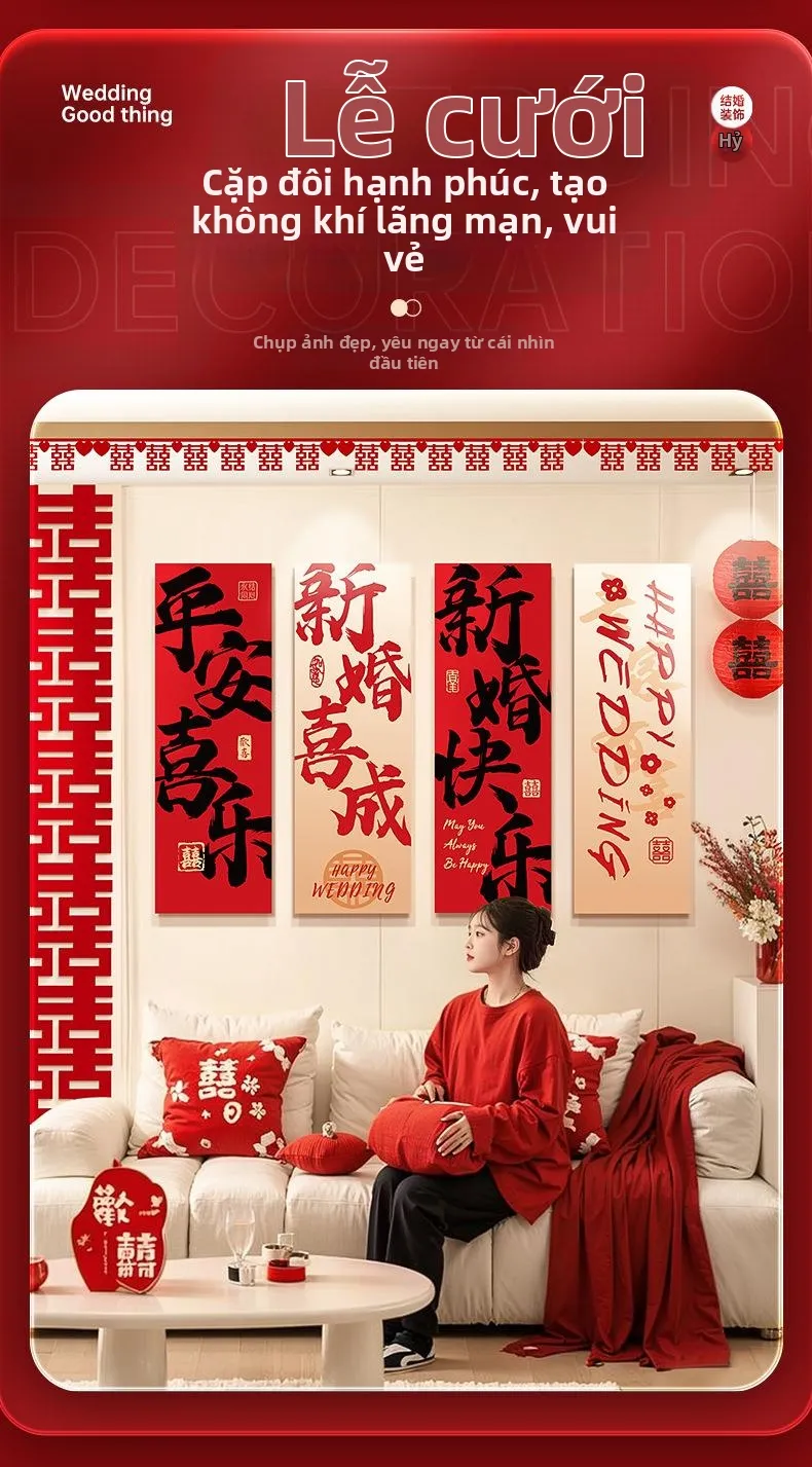 Sản phẩm này cung cấp một bộ trang trí đám cưới hoàn chỉnh, hoàn hảo để biến phòng ngủ, phòng khách và nền ghế sofa của bạn thành một bầu không khí lễ hội và lãng mạn.